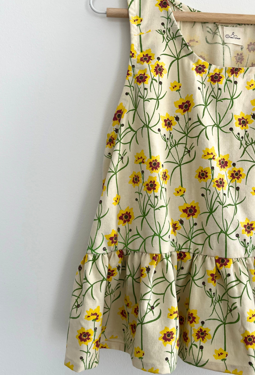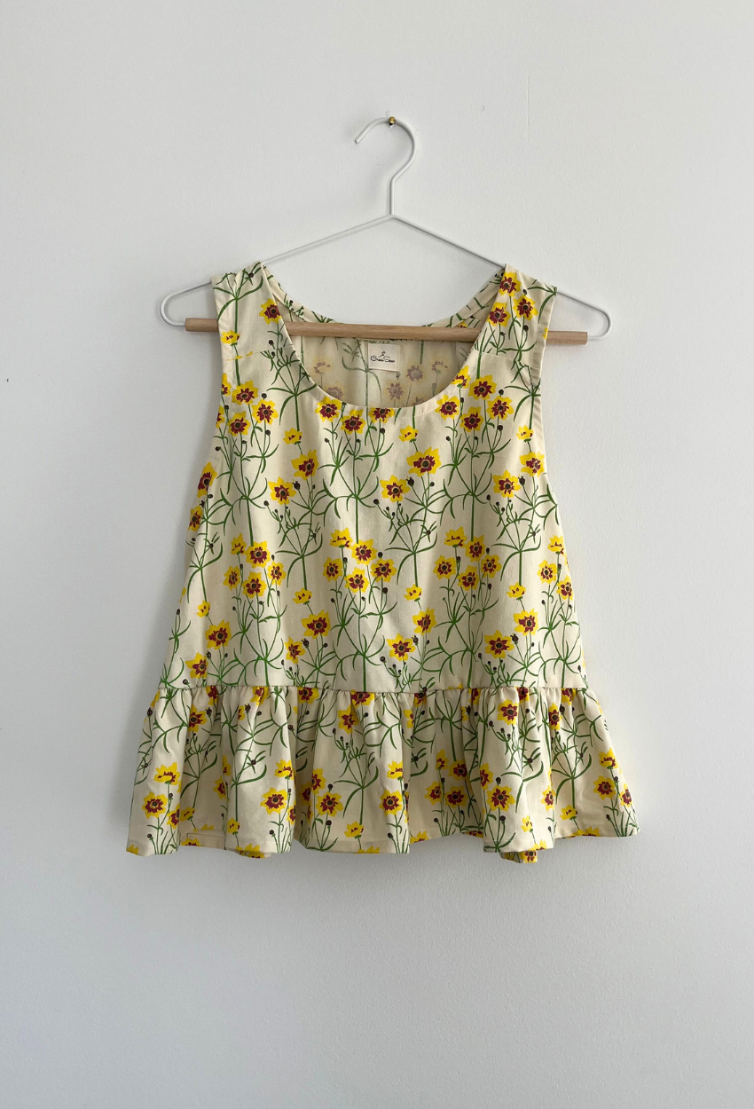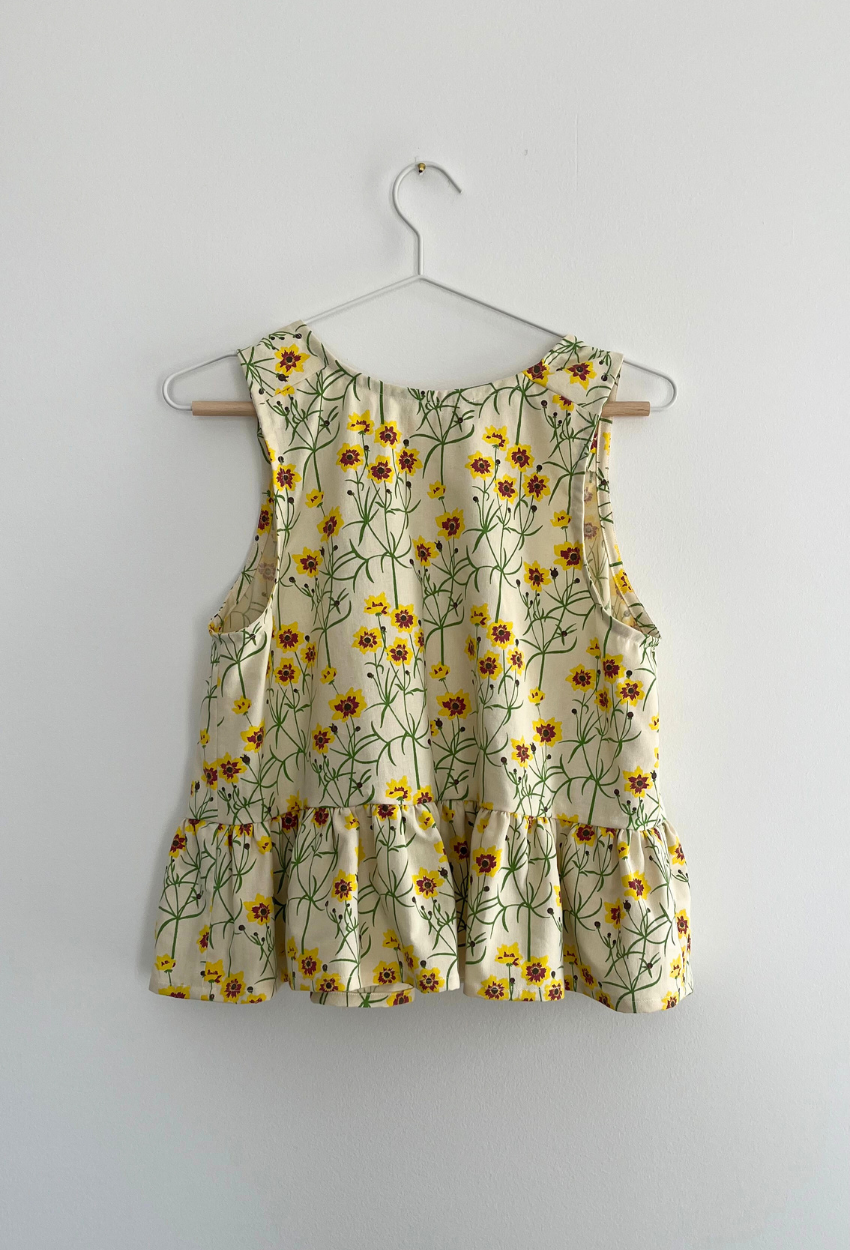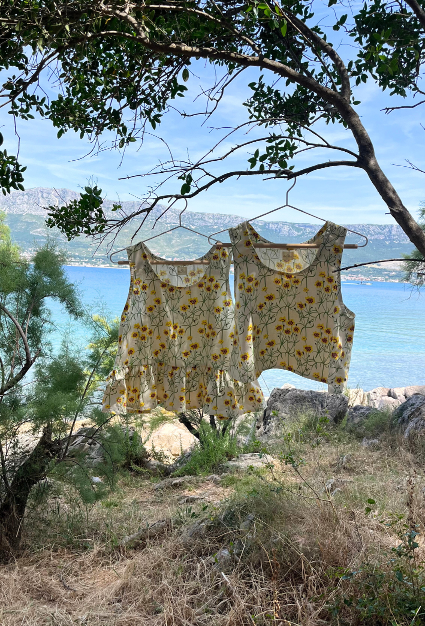 • Details: Yellow flowers pattern, Sleeveless, round neckline
