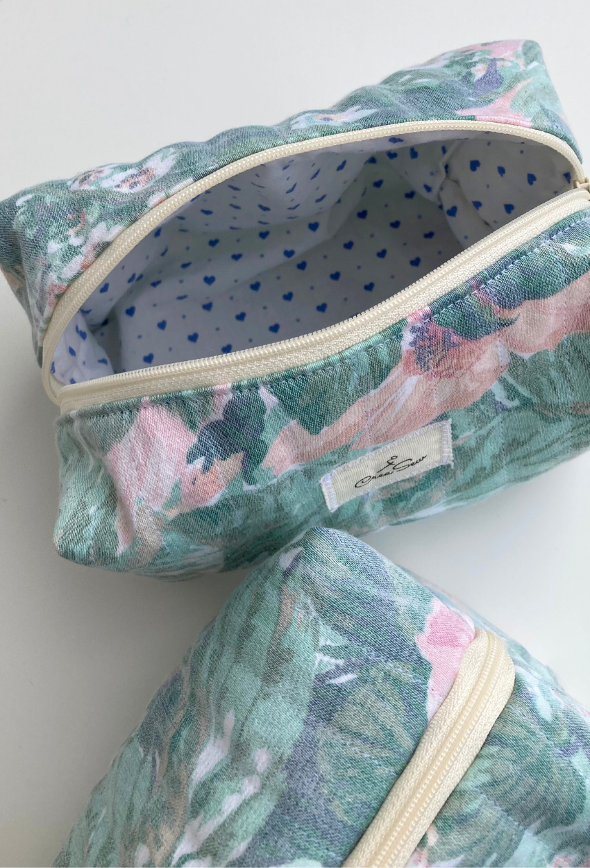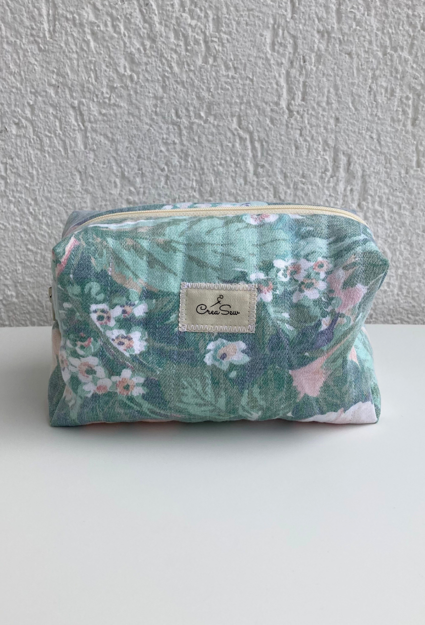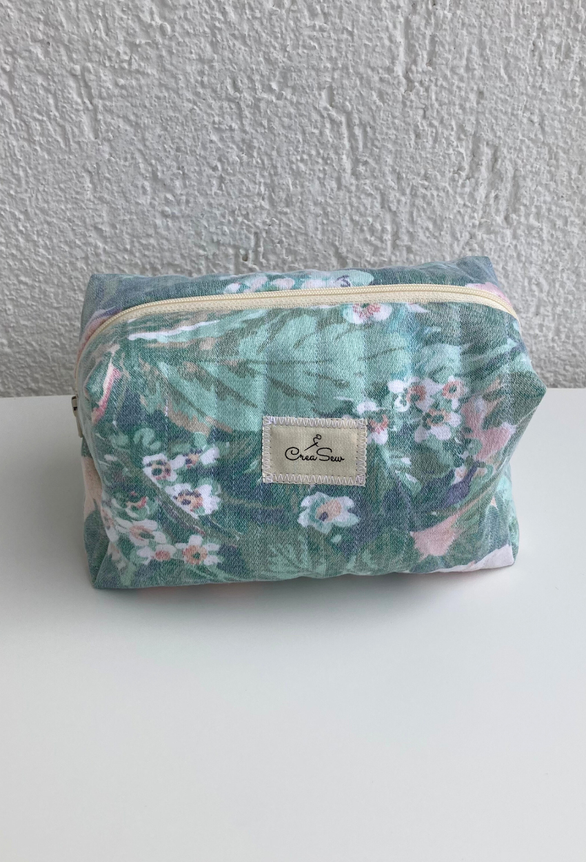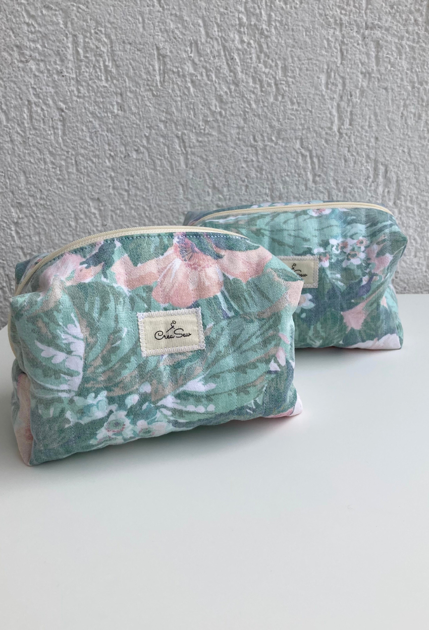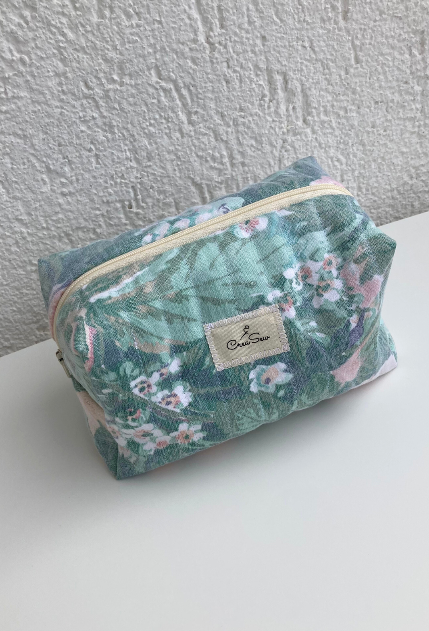 This stunning toiletry bag, crafted from quilted water-green cotton fabric, combines elegance with functionality. Its quilted structure offers gentle protection, while the zipper ensures easy and convenient access. Unique and eco-friendly, it’s the perfect blend of style, practicality, and sustainability. Ideal for storing beauty products, accessories, or daily essentials, this toiletry bag stands out with its spacious format and charming design. Perfect for keeping your essentials organized in style.